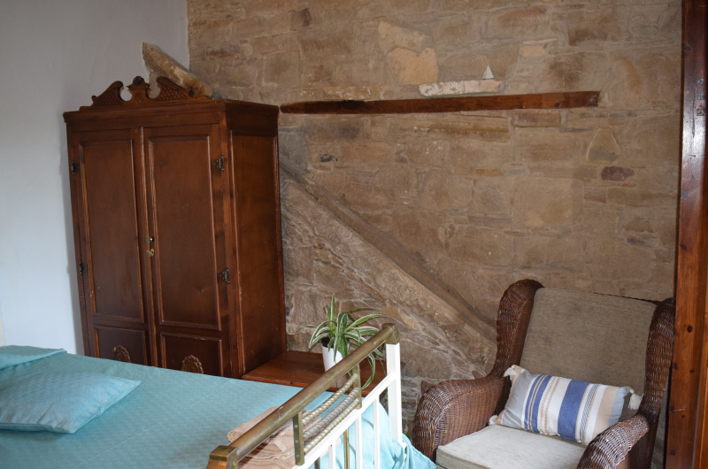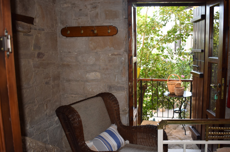 There is a distinctive feature of an “avlakotiras”in the room. It is a stone carved path for the water to come out of the room. As the houses are built joined to each other and some also have common walls this was the way to let the water out that was coming from the yard of the house behind.