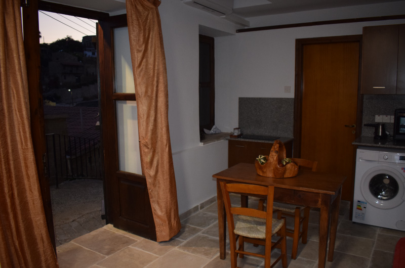 Room #2 was the kitchen of the house(Kouzina). Today is a small and very cosy studio with a window that oversees the village. It has a traditional double bed and like the other rooms a kitchenette and dining table. It is ideal for solo travellers or couples for a short stay.